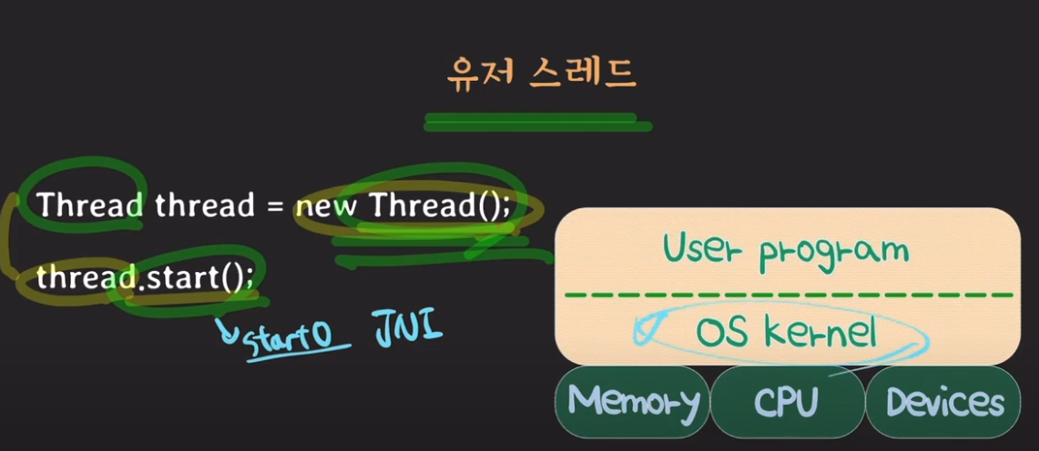 OS 스레드 : OS Kernel이 생성하고 관리하는 스레드