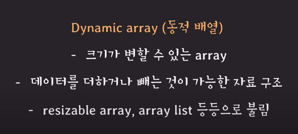 ( ex. cpp - vector, JAVA - ArrayList)