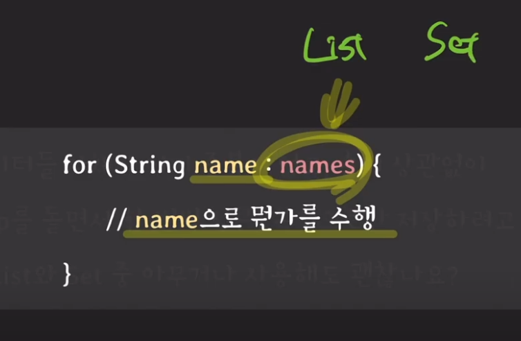 만, 즉 모든 데이터에 한 번씩 접근하여 아래와 같이 뭔가를 수행하고 싶을 때, List와 Set중 무엇이 더 효율적인가?