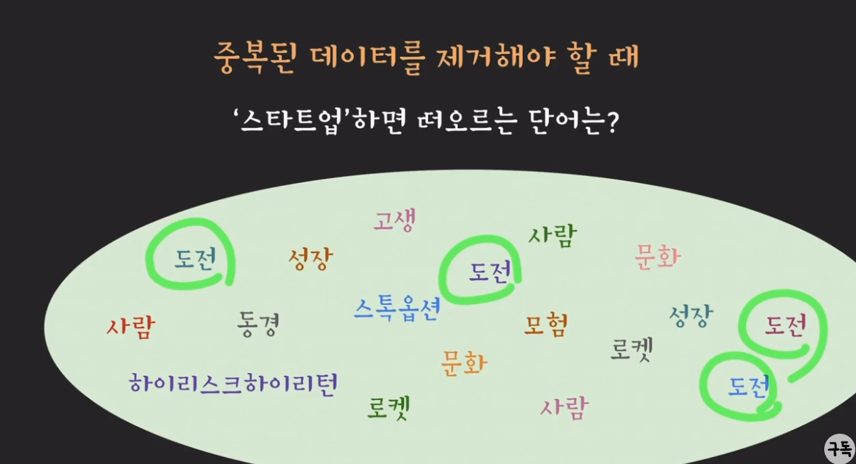 중복된 단어들을 Set에 넣게 되면, 서로 다른 단어들만 남게 된다.