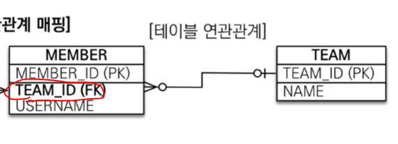 사전 지식 : FK는 단 1개의 TABLE만을 가리킬 수가 있다.( 위 그림은 여러 Member들(Member Table)이 하나의 Team(1개의 Team Table)에 소속되어 있음을 뜻함)