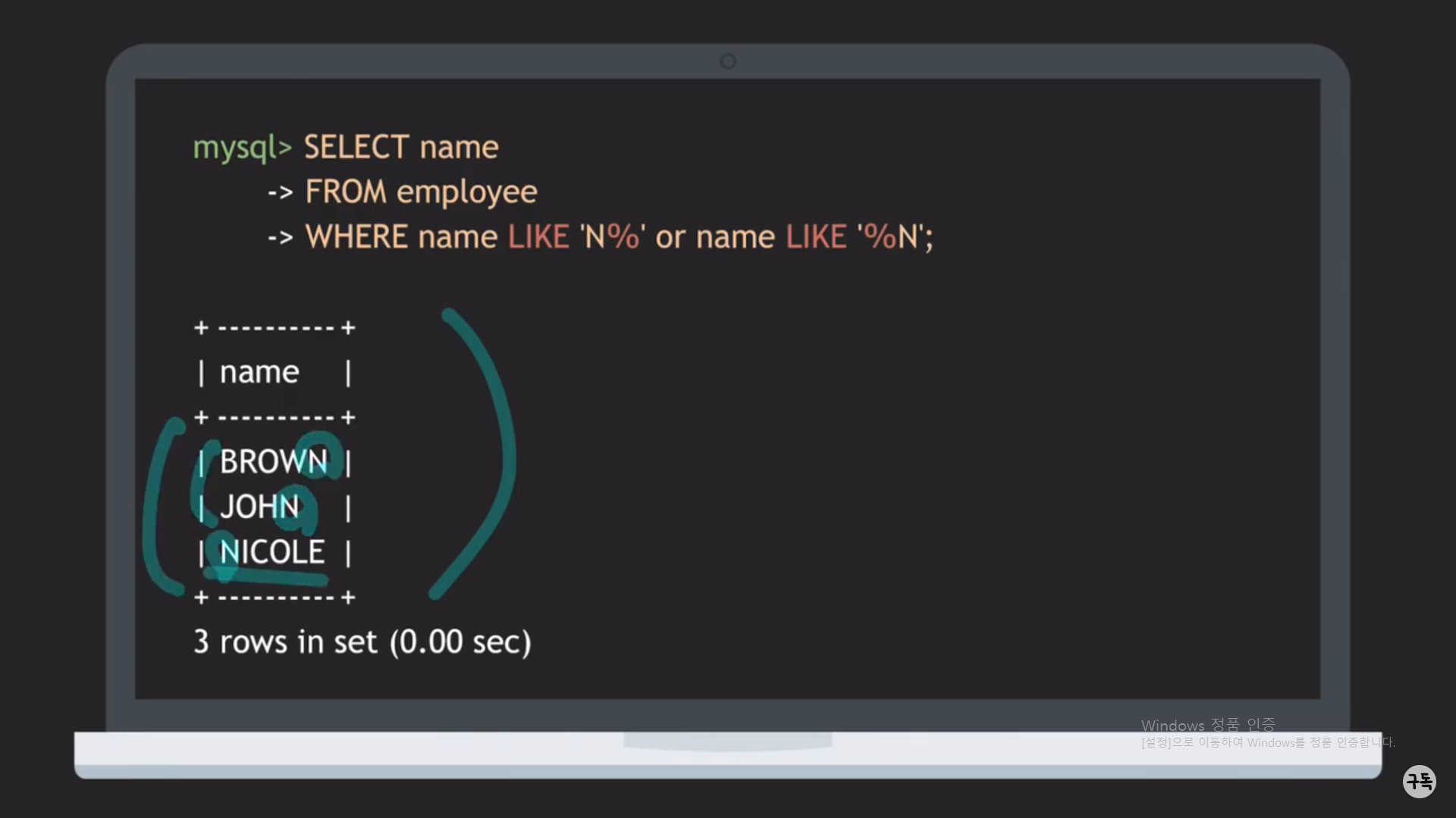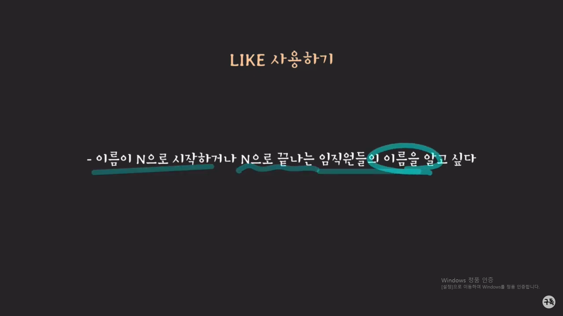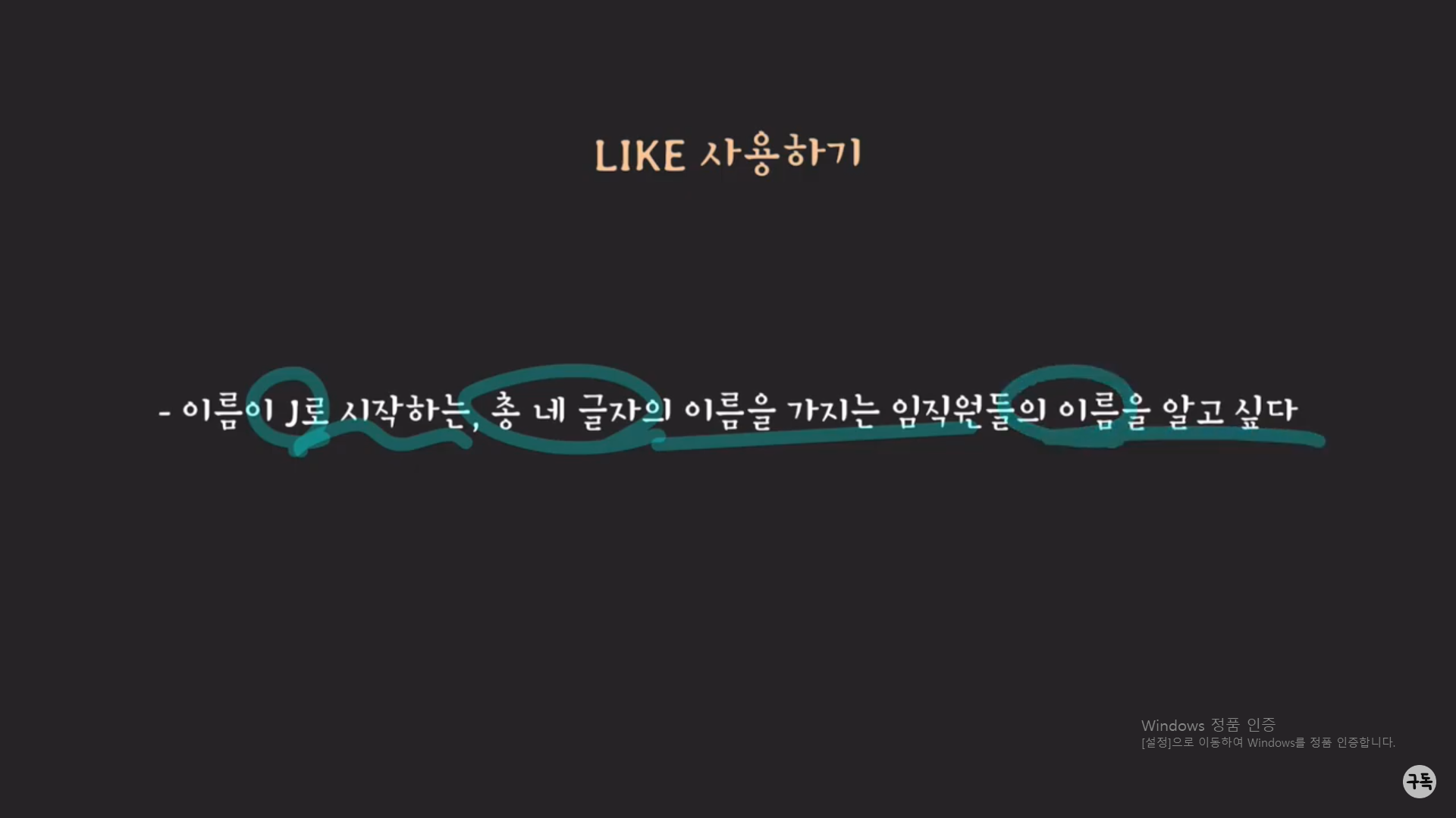 SQL문을 작성하기 이전에 '%' 문자가 SQL에서 의미하는 바를 학습하고 가자.