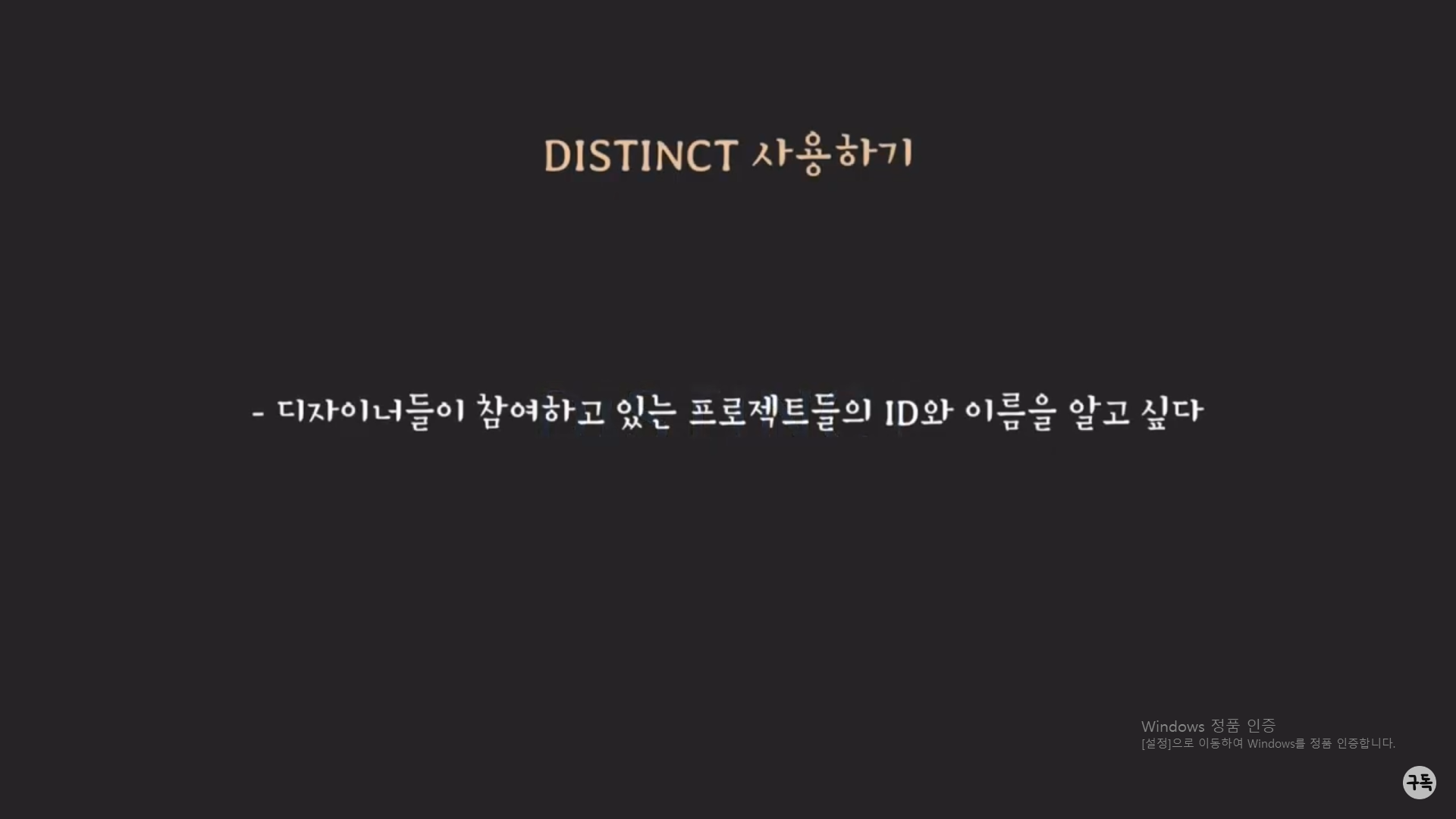 이러한 중복된 tuple을 제거하기 위하여 DISTINCT를 사용한다.(아래 참조)