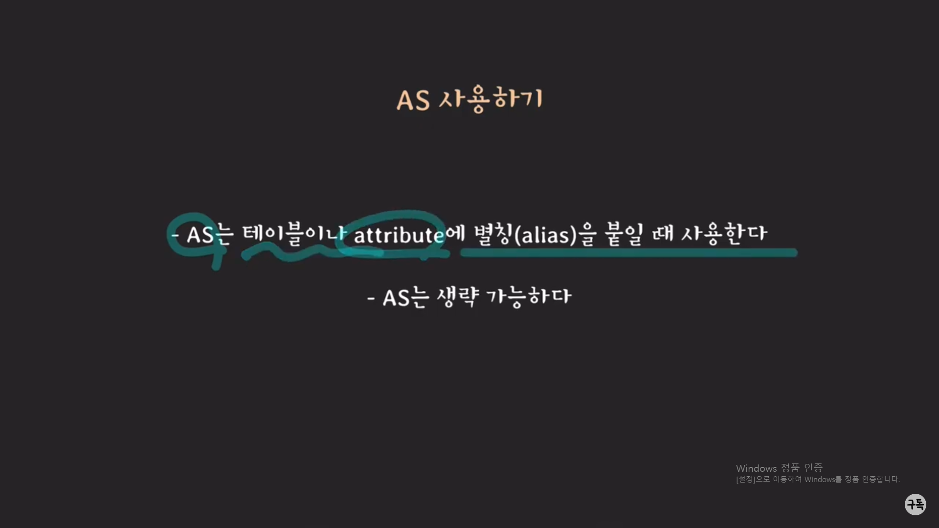 attribute에도 AS 키워드를 사용하여 결과값이 출력됐을 때, COLUMN명을 바꿔 줄 수가 있다.(아래 참조)