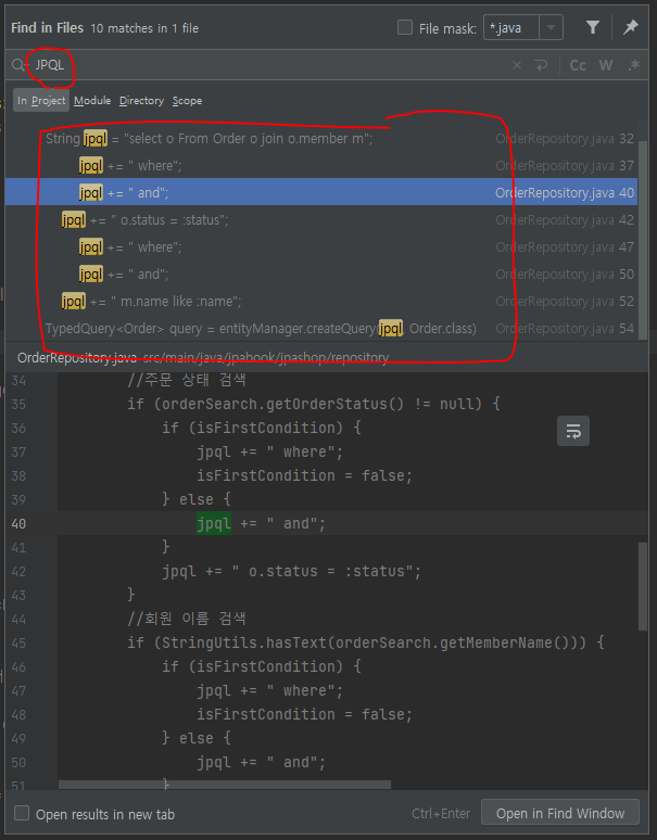 [ctrl + alt + P] : 프로젝트 전체에서 어떠한 문자열의 모든 위치를 알려 준다.
