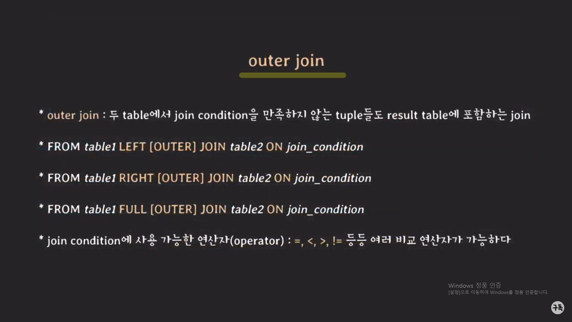 그러나 SQL 표준에서는