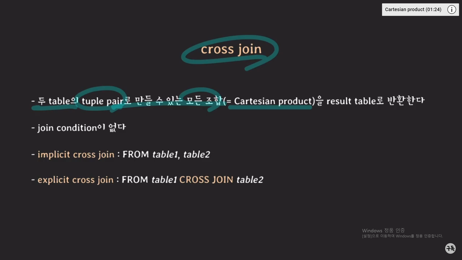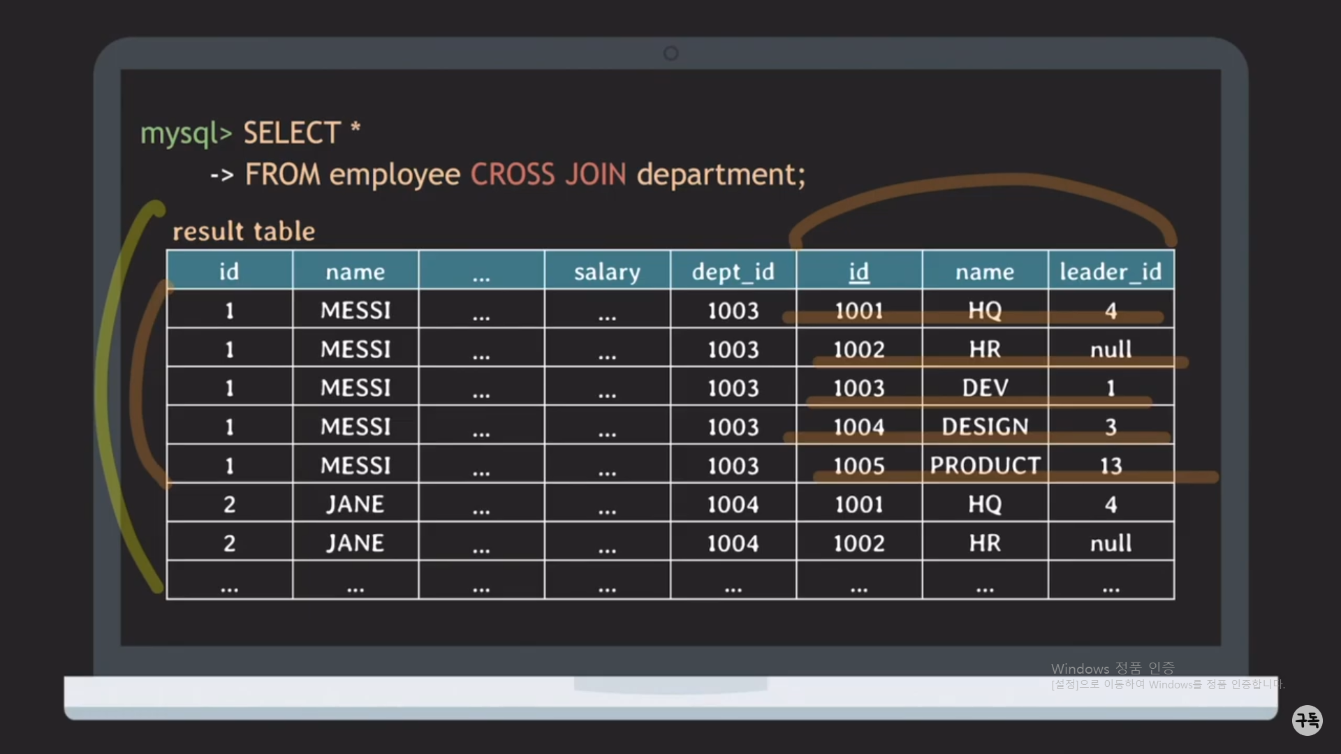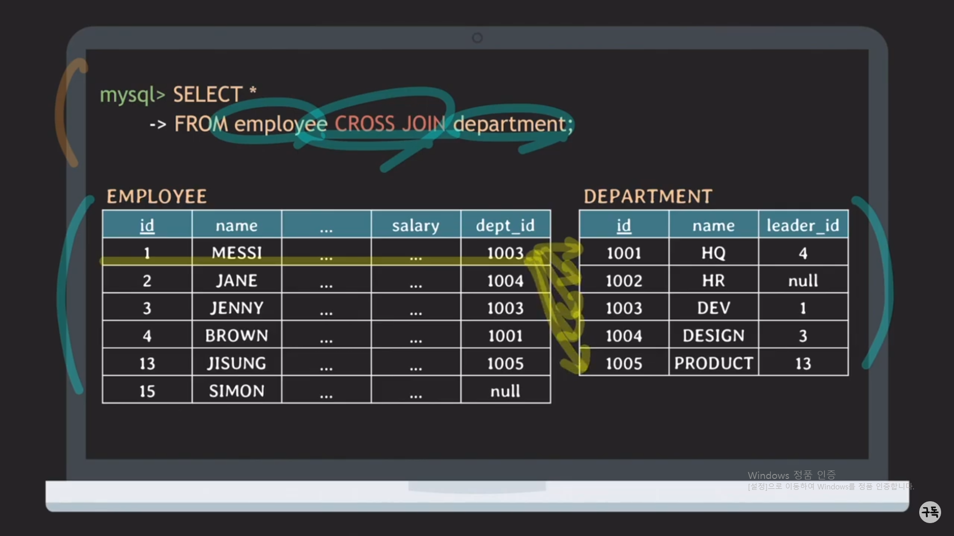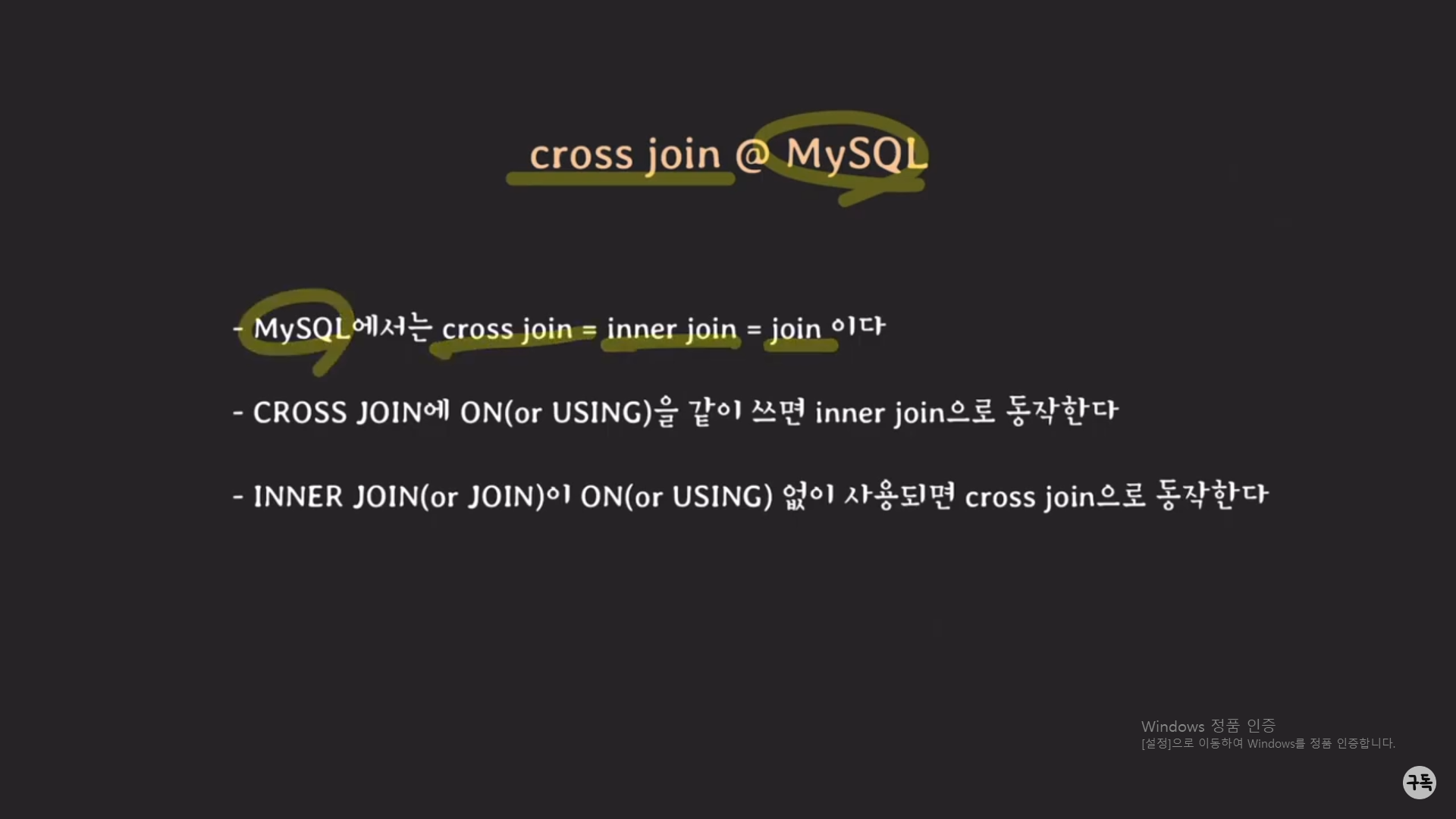 있기에, Cross JOIN = [inner] JOIN은 성립되는 말이다.