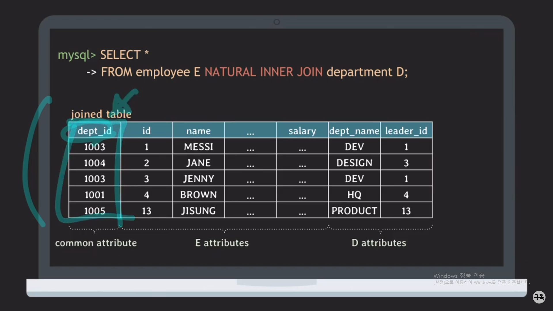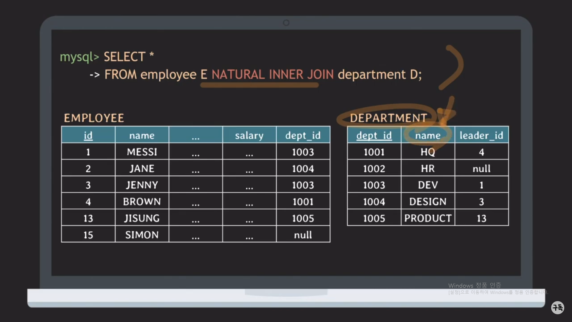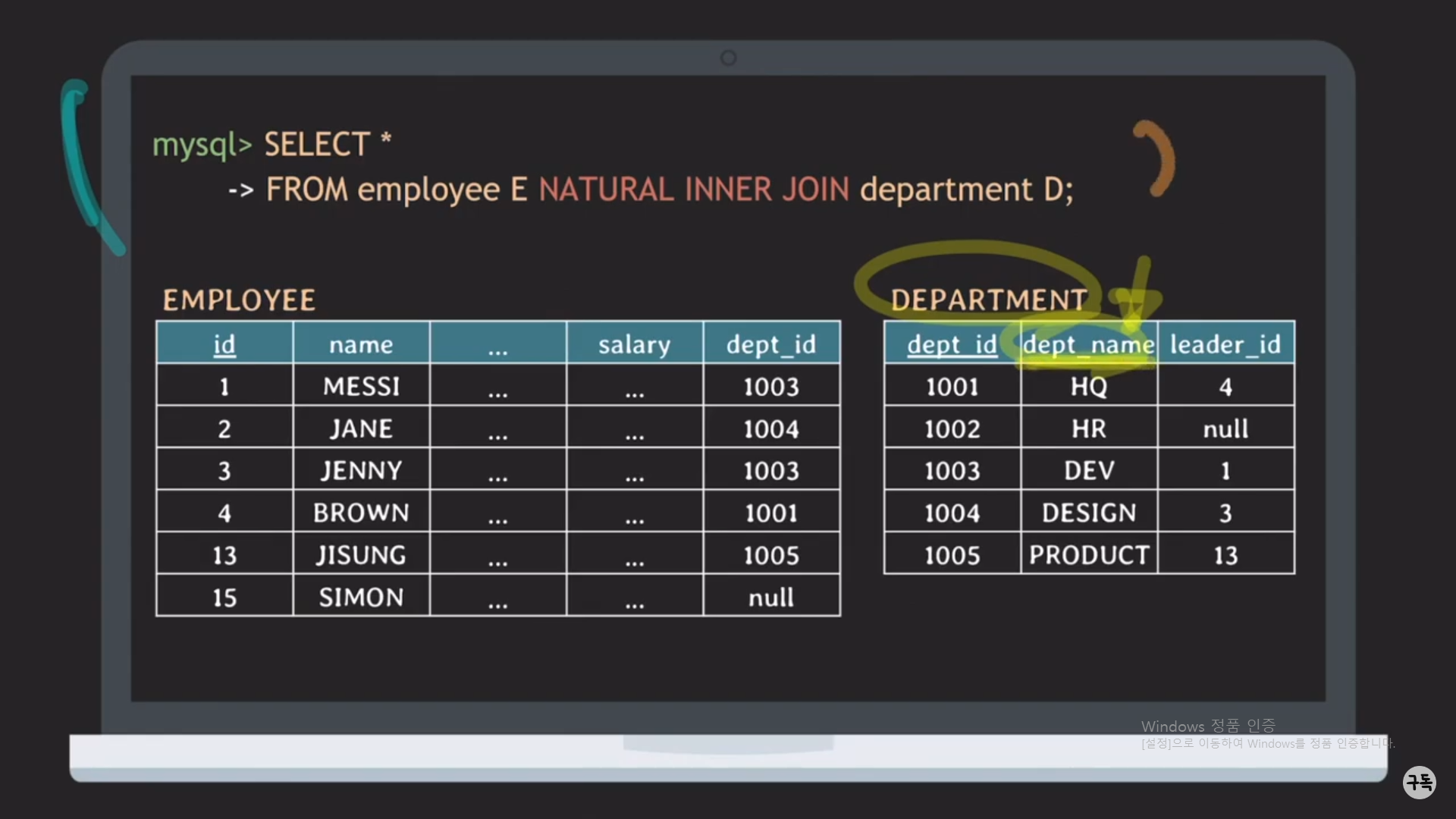 다시 Department.name으로 바꿔서 Natural JOIN에 대해서 생각해 보자.