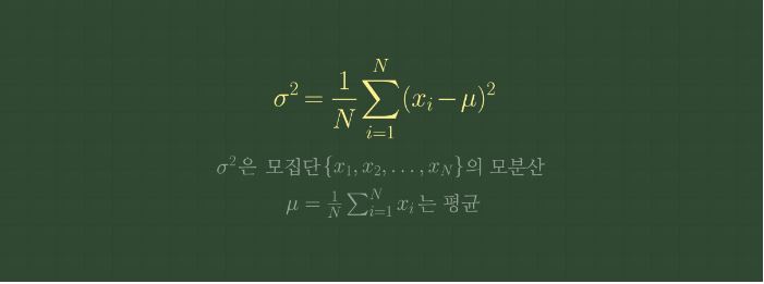 본격적인 설명을 하기 앞서, 아래의 모분산의 공식을 이해하고 있어야 한다.