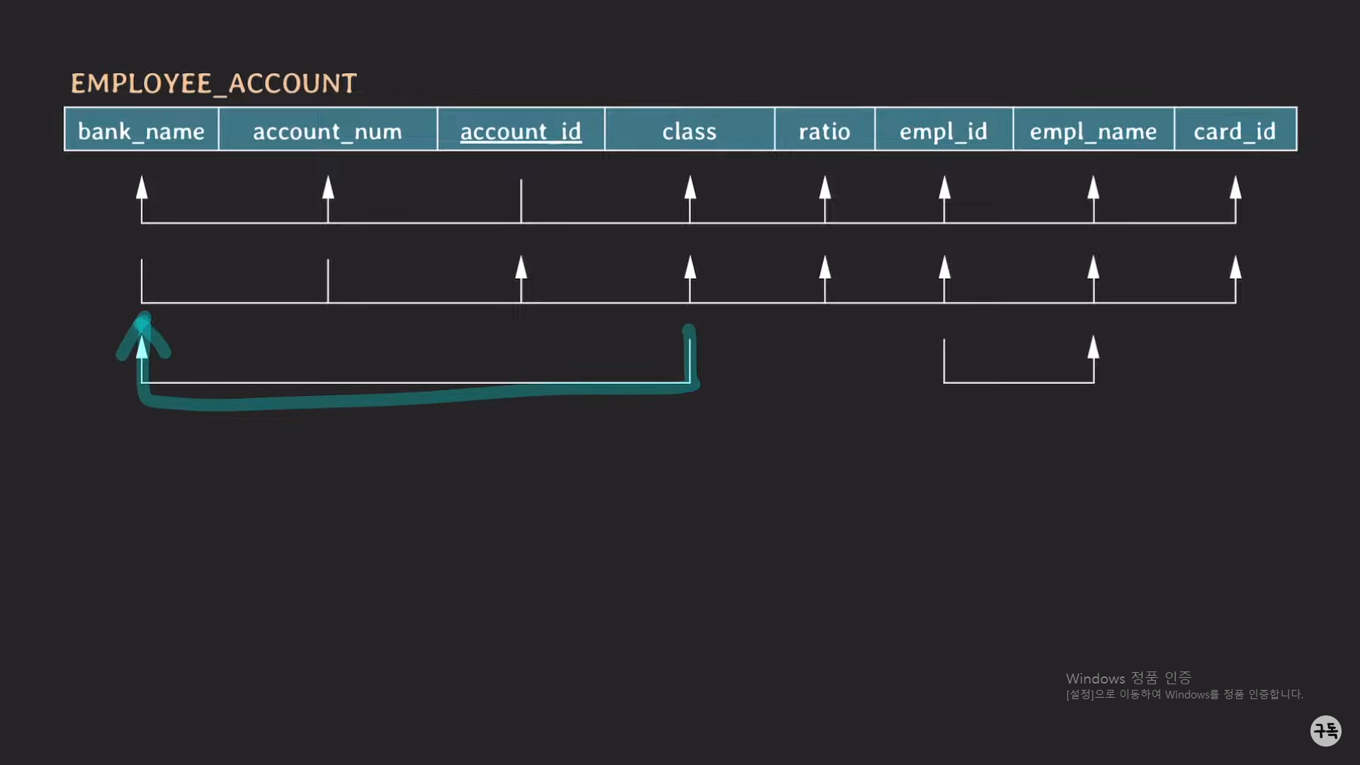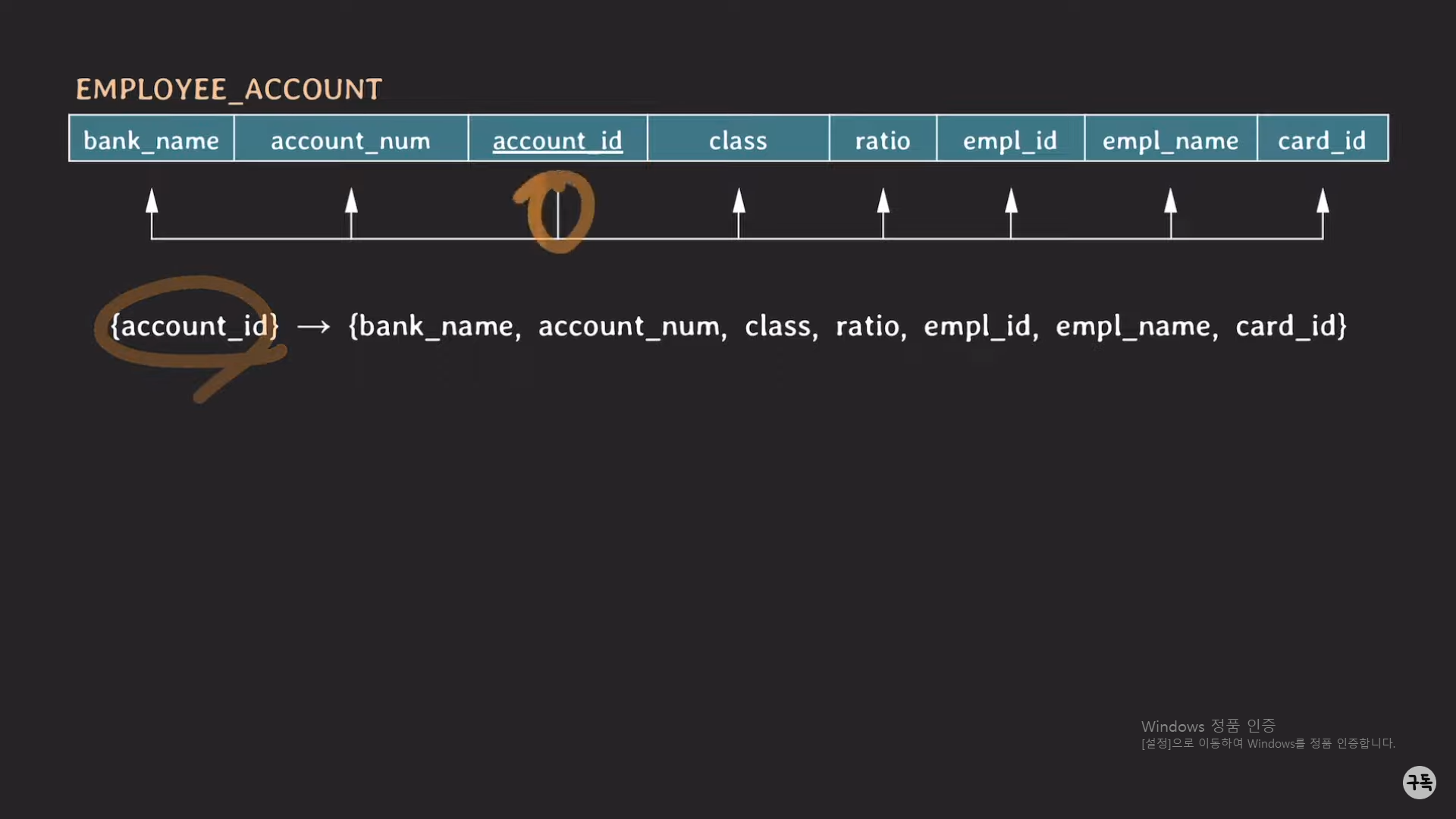 EMPLOYEE_ACCOUNT에 존재하는 모든 FD를 아래에서 보여 주고 있다.