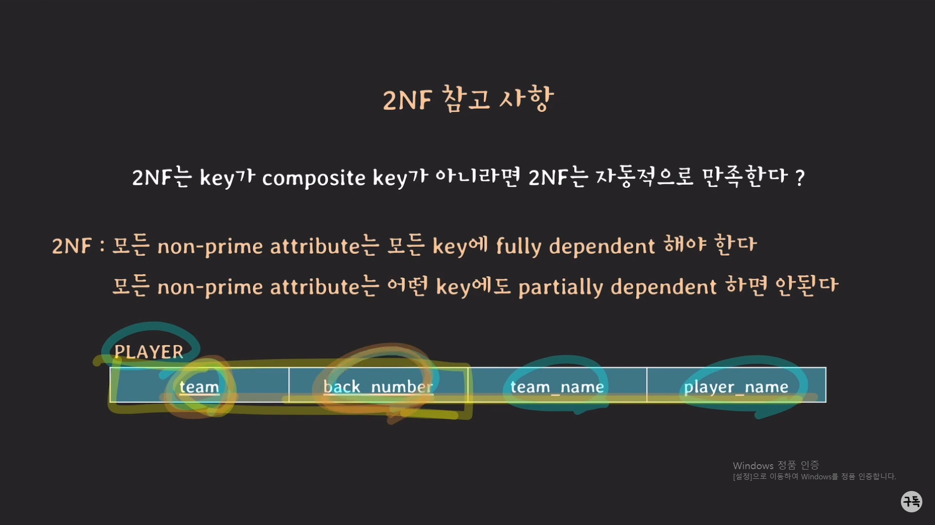 교과서 등에 2NF에 대하여 key가 composite key가 아니라면, 즉 key가 1개의 attribute로 구성이 되어 있다면 자동적으로