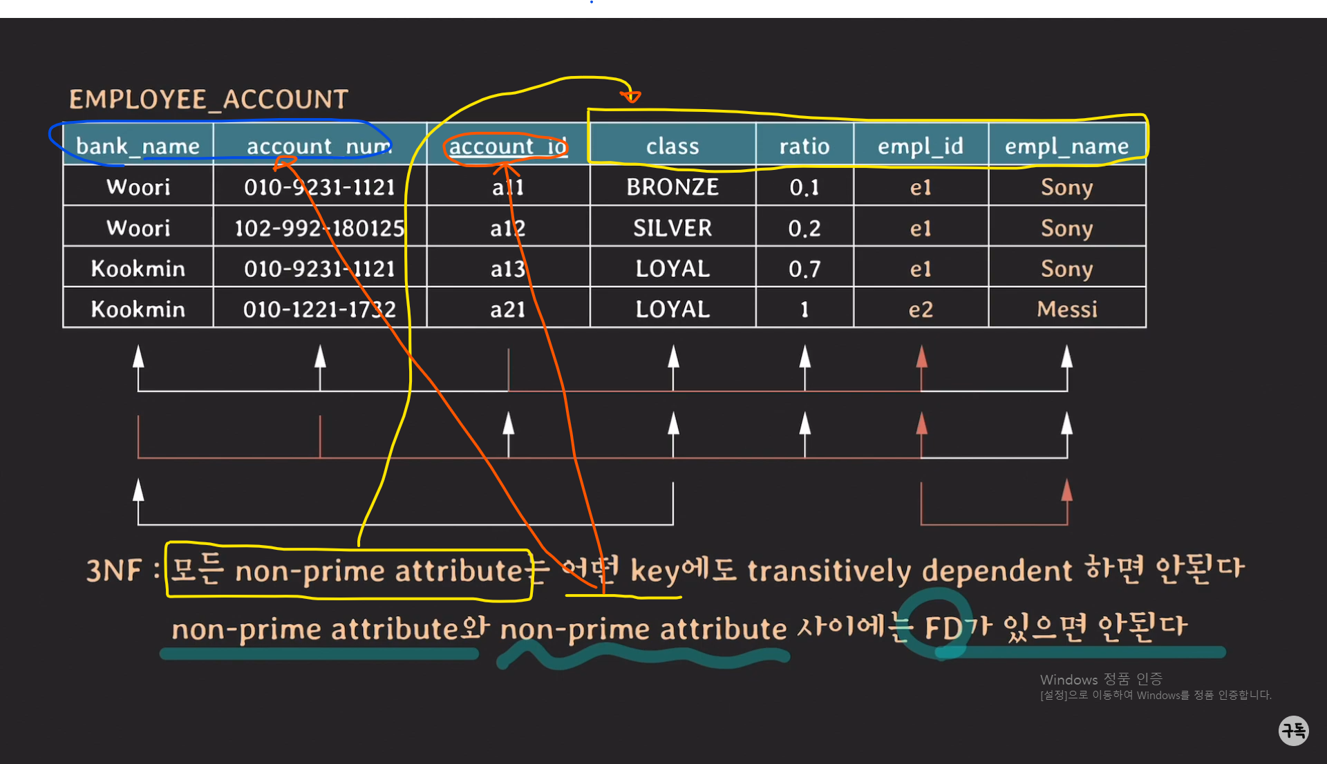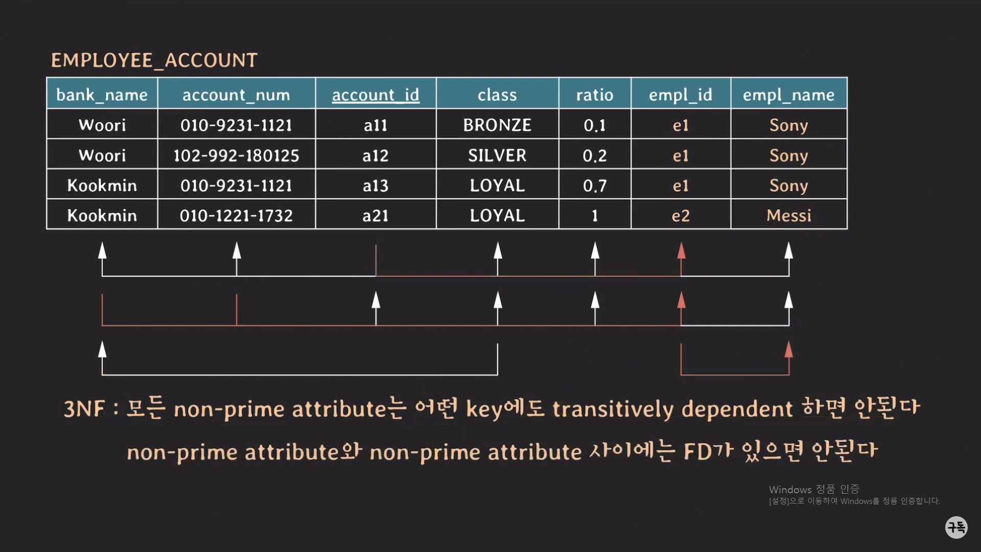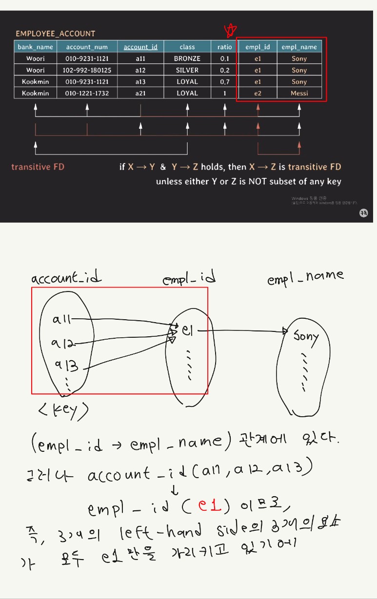 모든 non prime attribute는 여기서는 {class,ratio, empl_id, empl_name}에 해당