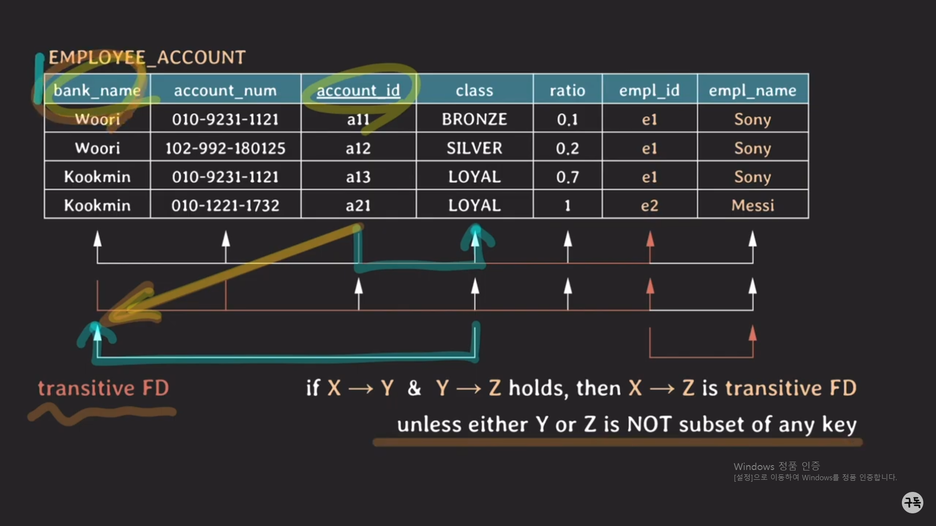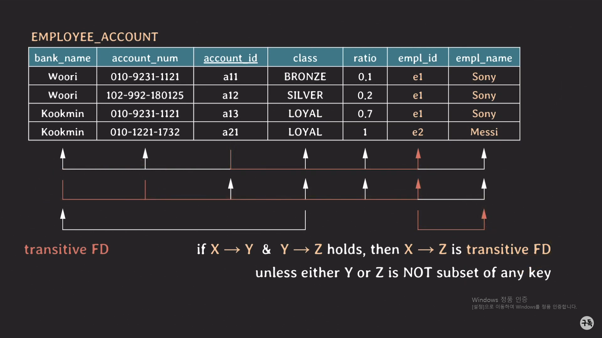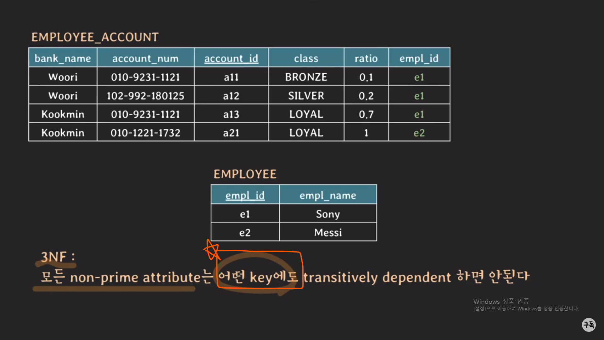 모든 non prime attribute는 여기서는 {class,ratio, empl_id, empl_name}에 해당