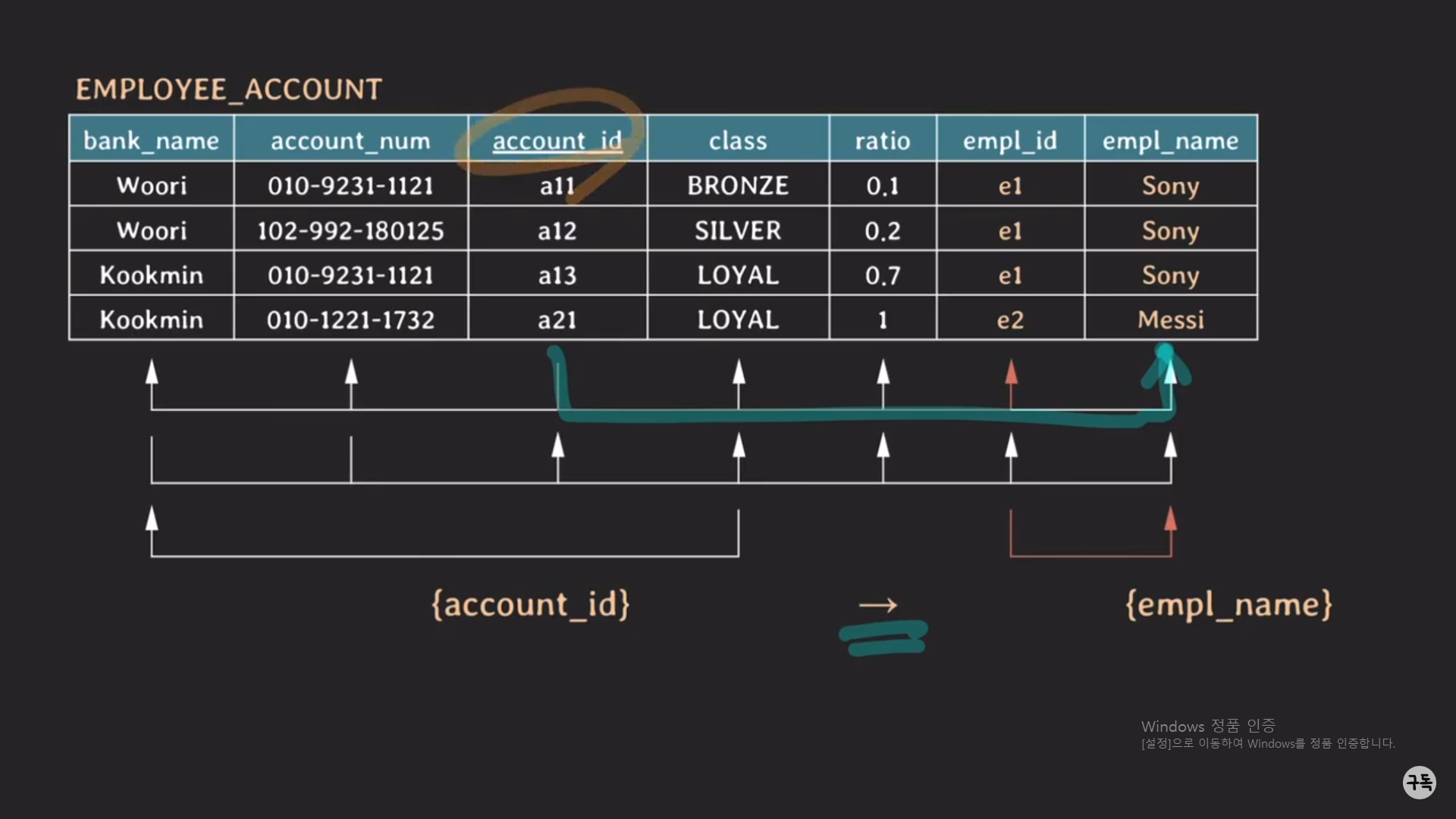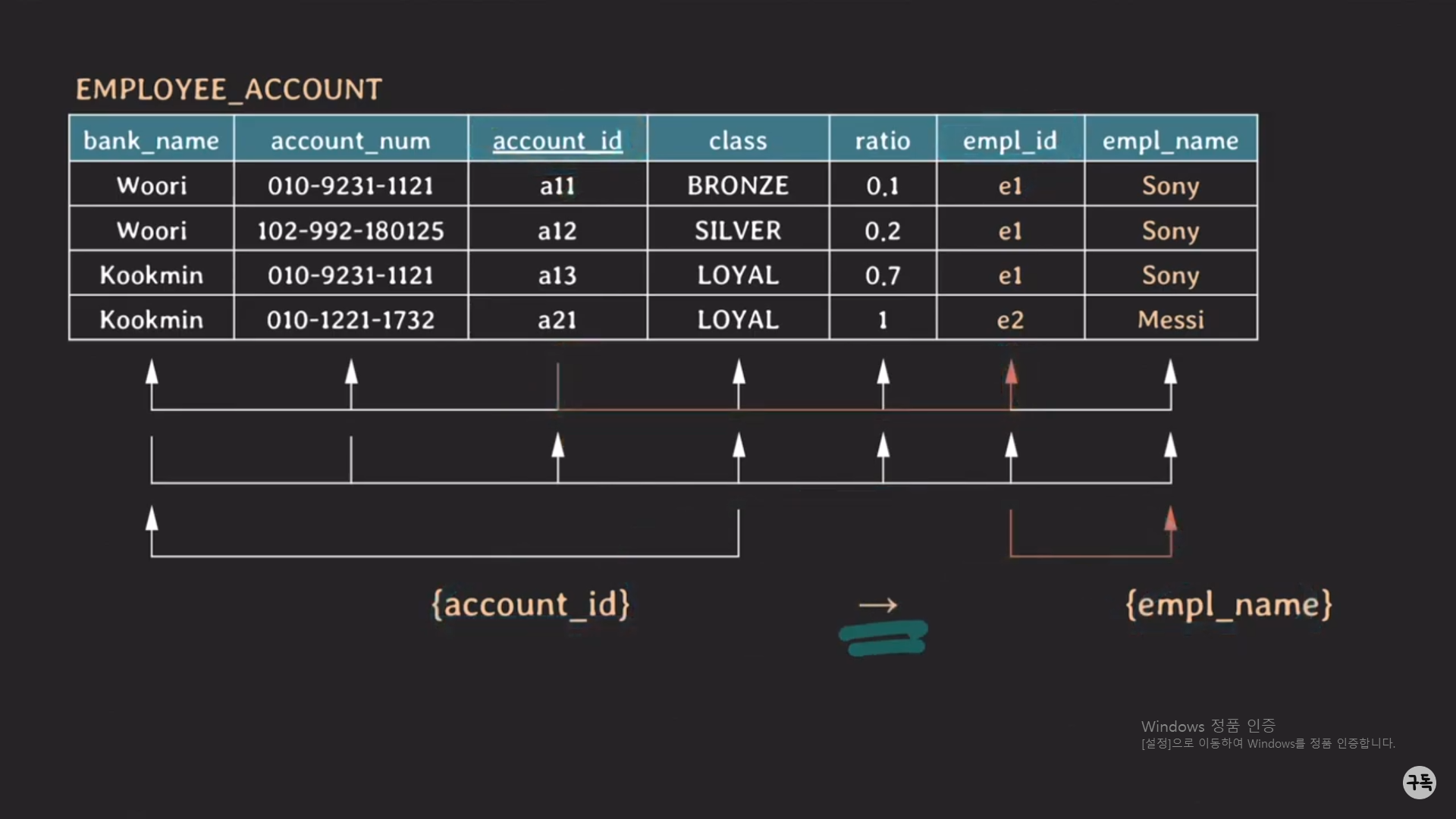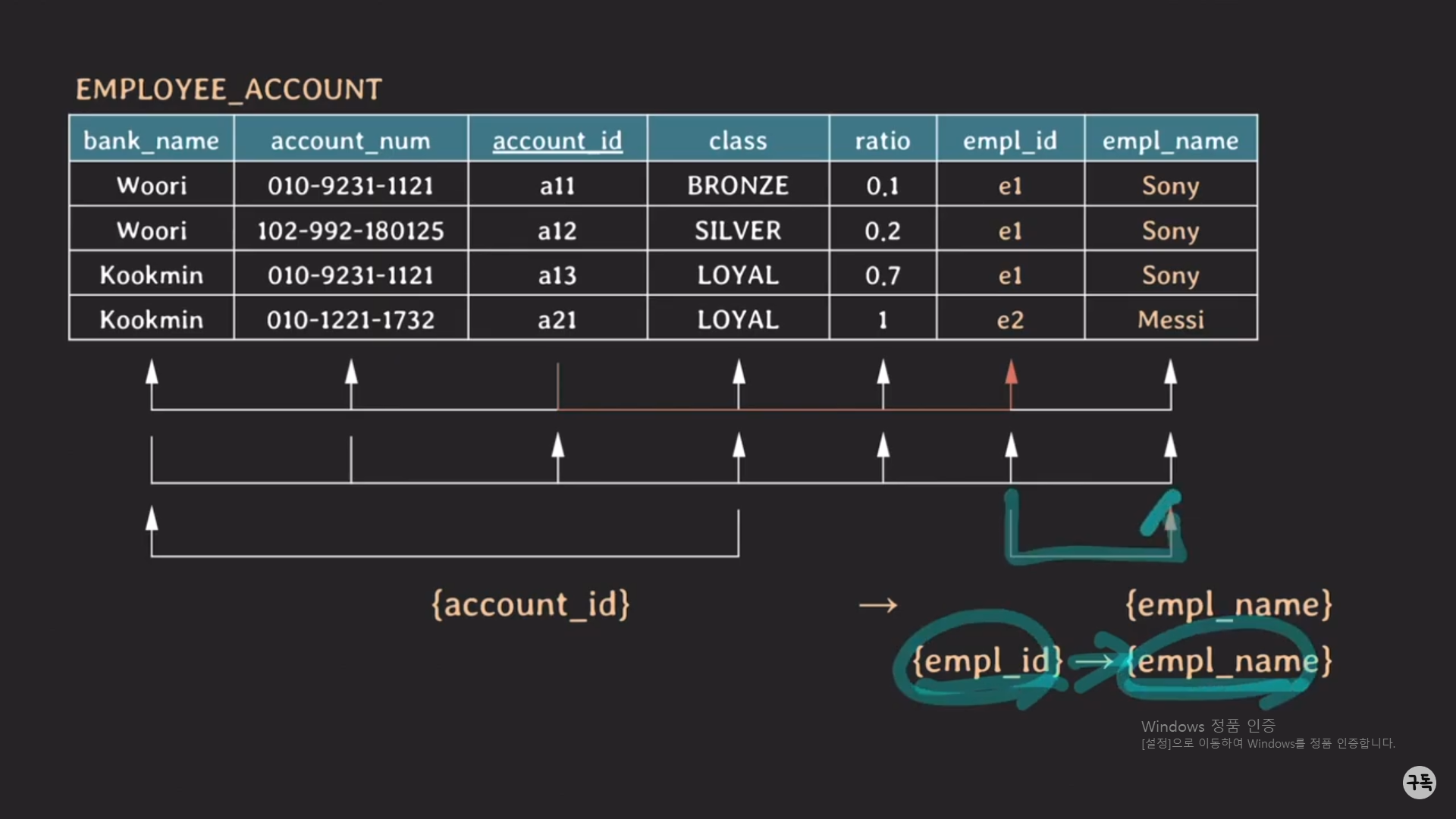 EMPLOYEE_ACCOUNT Table의 FD를 시각화한 것이다.