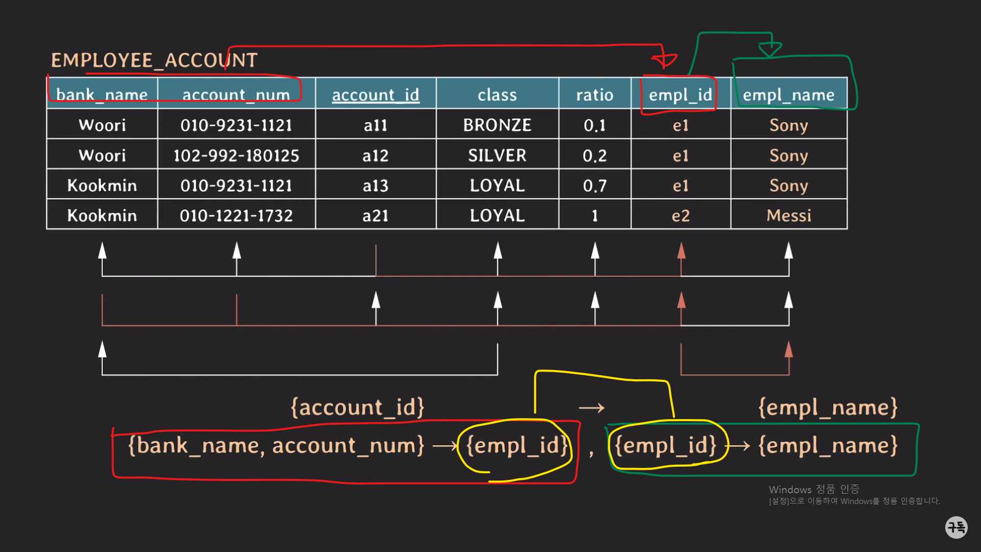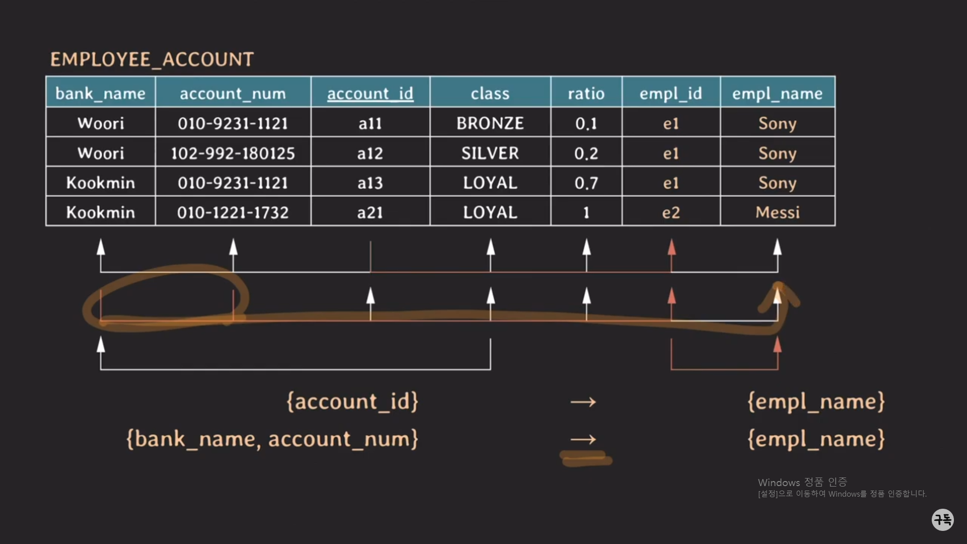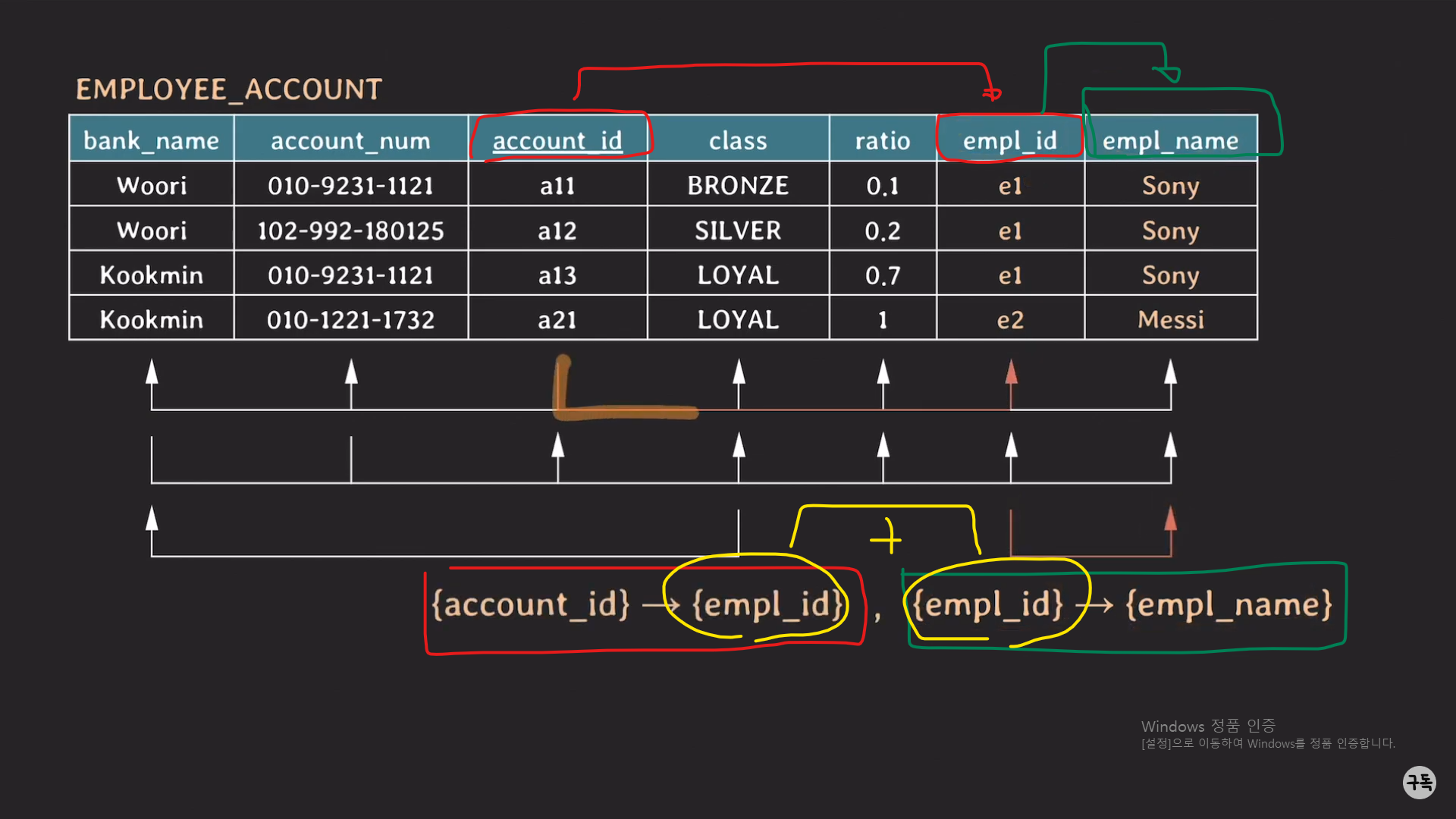 EMPLOYEE_ACCOUNT Table의 FD를 시각화한 것이다.