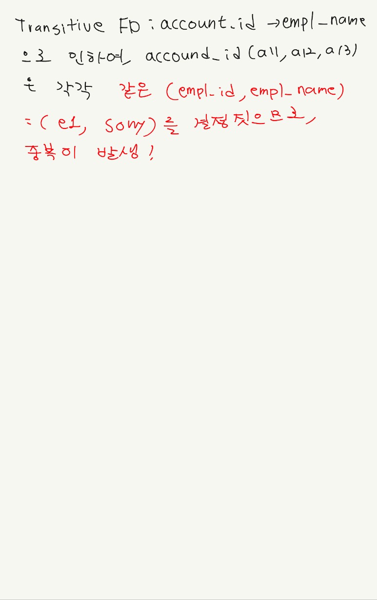 solution : 문제가 되는 non prime attribute를 다른 테이블로 따로 분할을 시켜준다.(아래 참조)