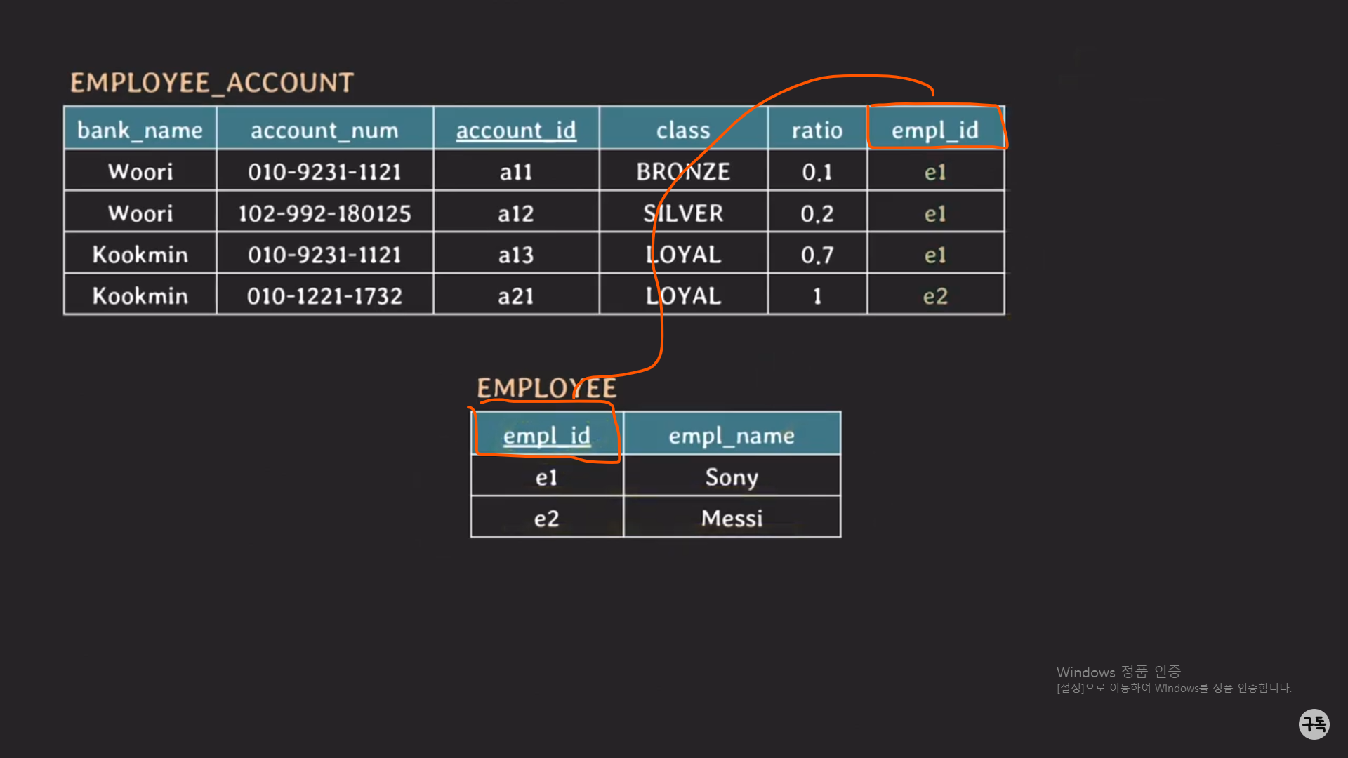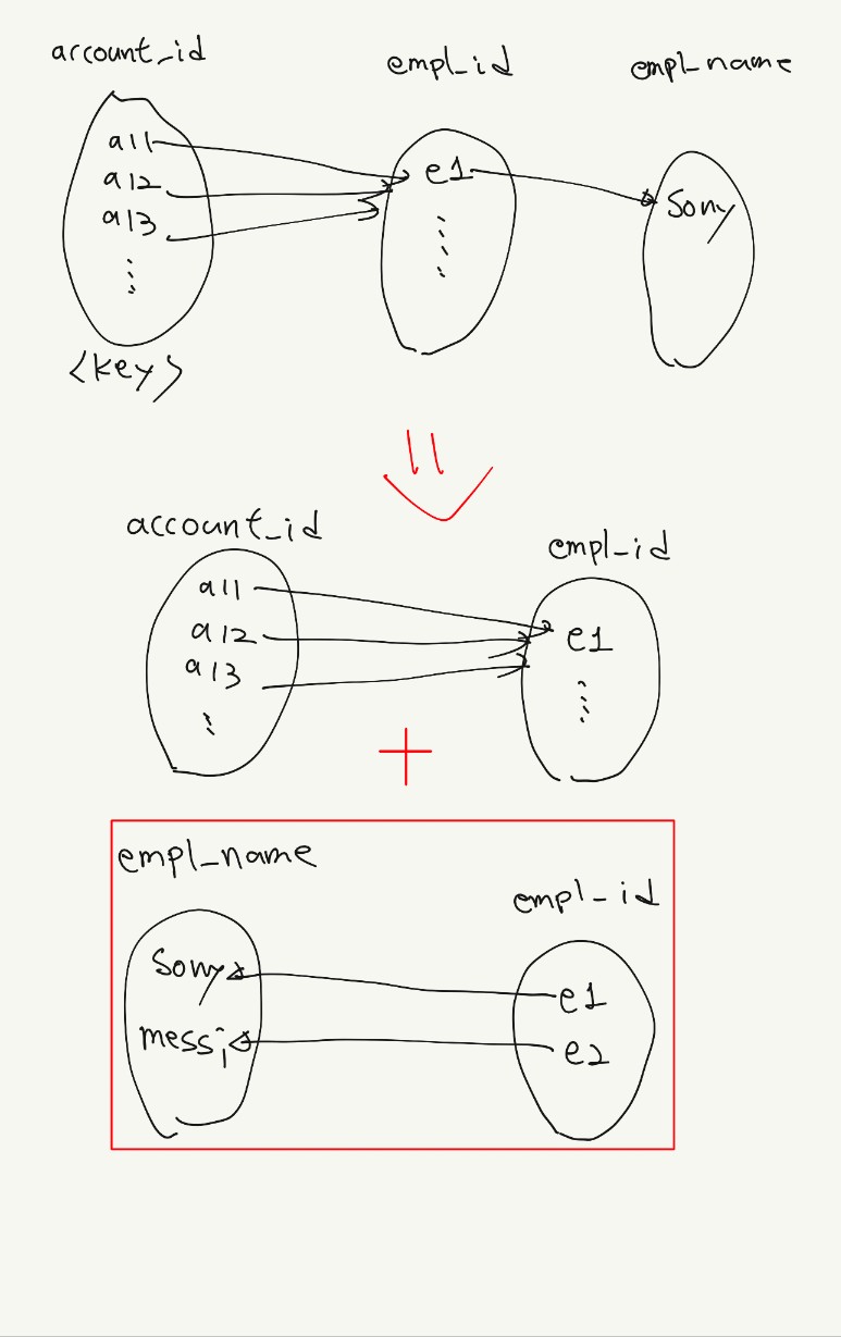 그리고 account_id(key) -> empl_id이다.