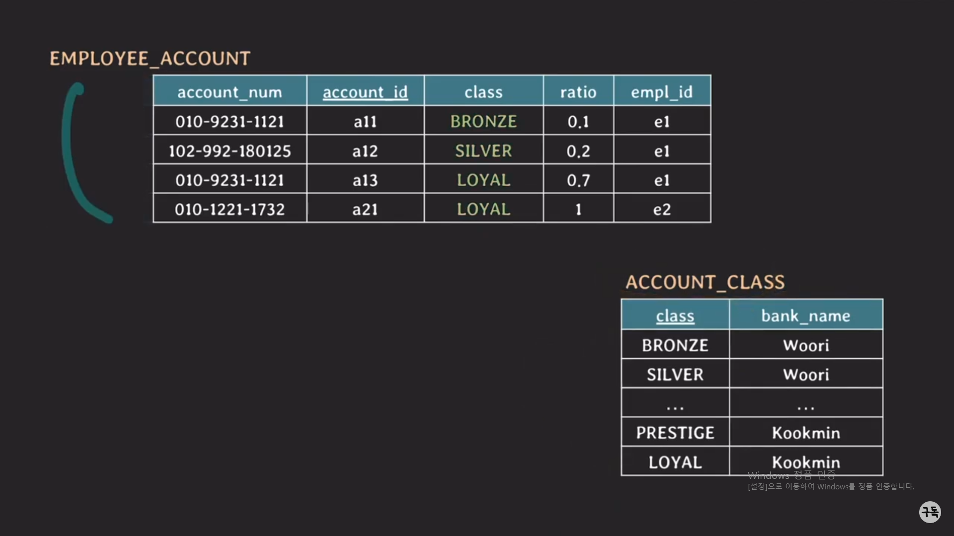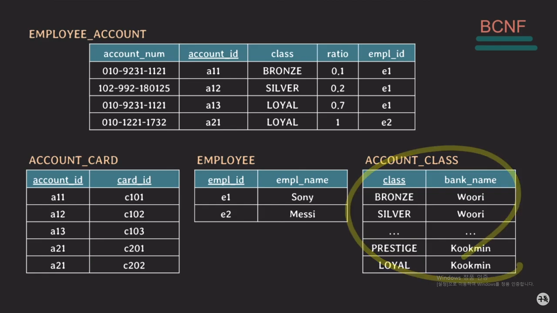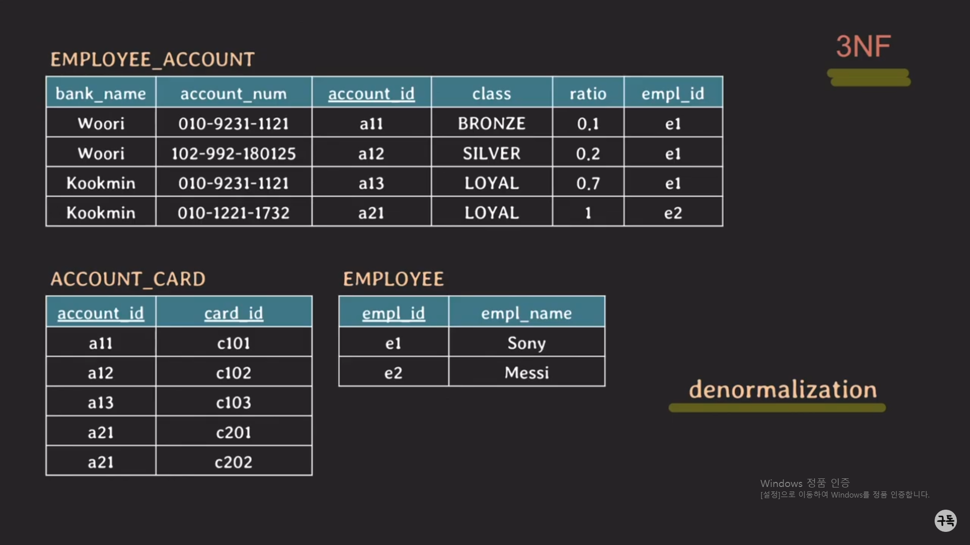 ACCOUNT_CLASS을 역정규화(denormalization)하면 아래와 같이 되면서 BCNF에서 3NF로 바뀐다.