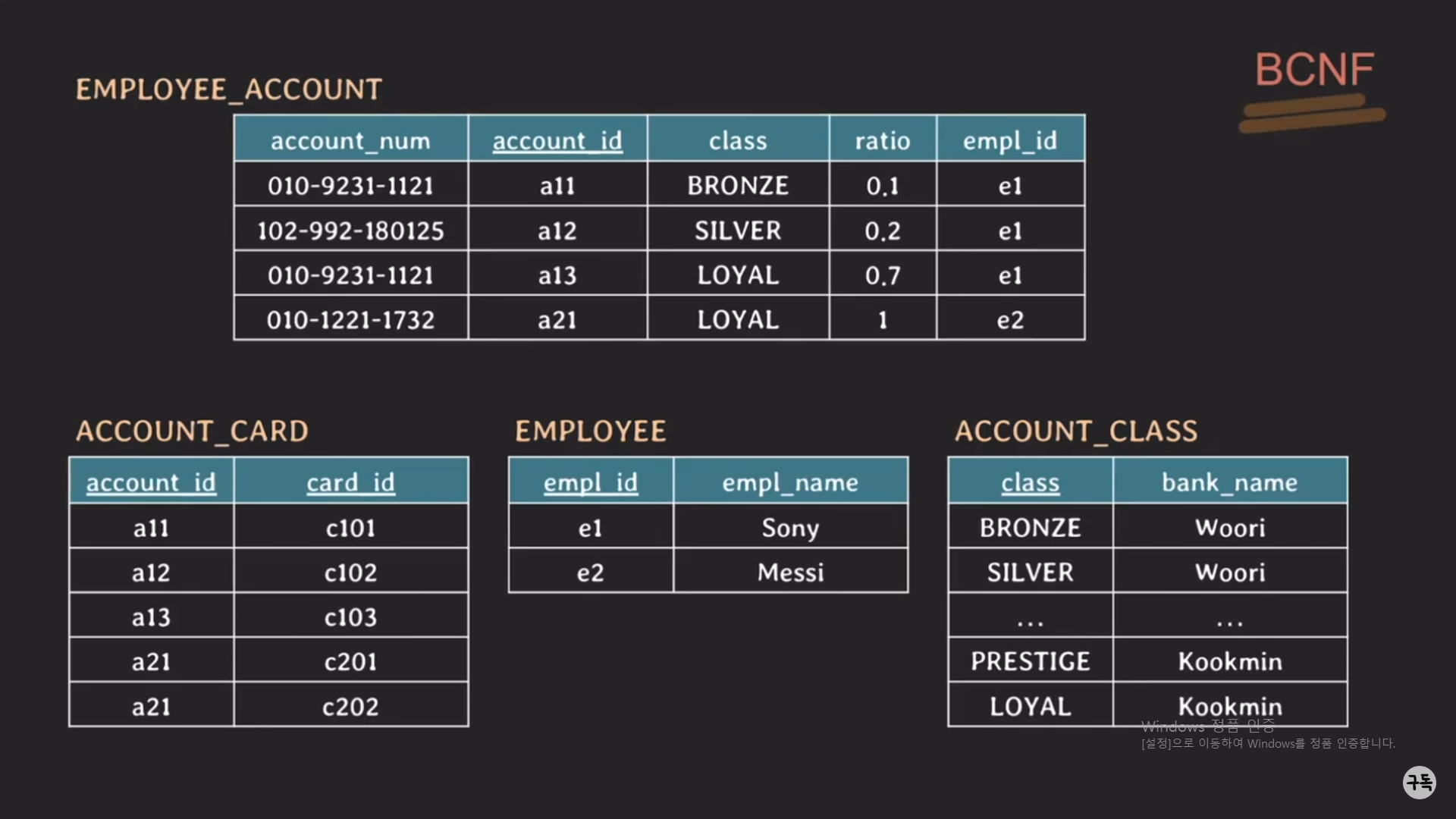 EMPLOYEE_ACCOUNT TABLE은 애초에 non trivial FD가 없고,