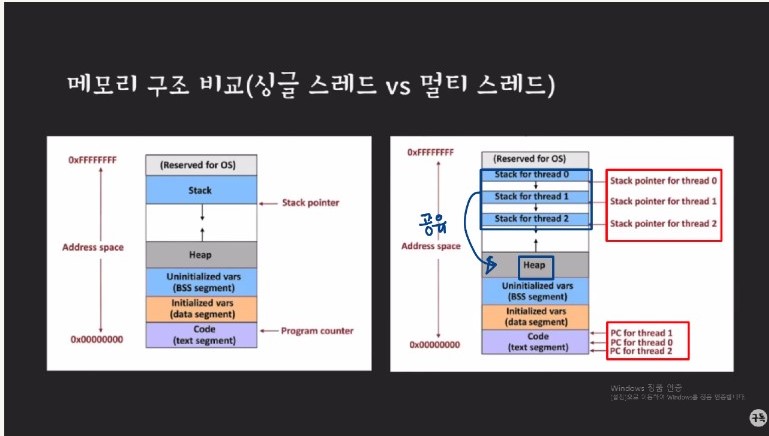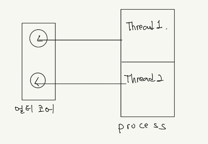 쓰레드로 나뉘어 하드웨어적인 방법으로 동시에 실행시키는 것이 가능하게 됨에 따라 하나의 프로세스가 동시에 여러 작
