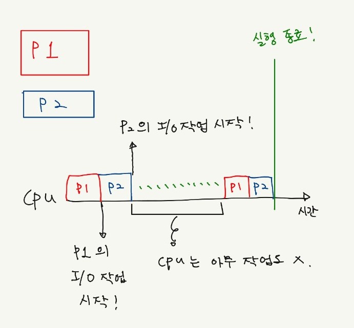 -> 프로세스의 I/O 작업 중 CPU는 유휴 상태에 들어 간다.