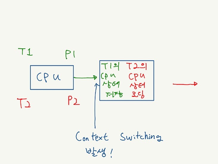 되지 않는다. 만약 누군가가 프로세스에 대해 문맥 교환이 일어났다고 함은, 그건 싱글 스레드로 구성된 프로세스가 있는