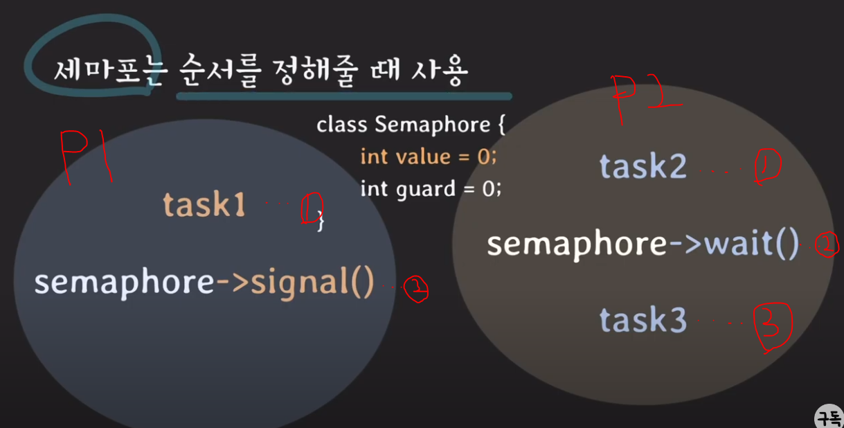 그러나 세마포아는 어떤 프로세스/스레드가 먼저 signal()을 날릴지 알 수가 없기 때문이다.